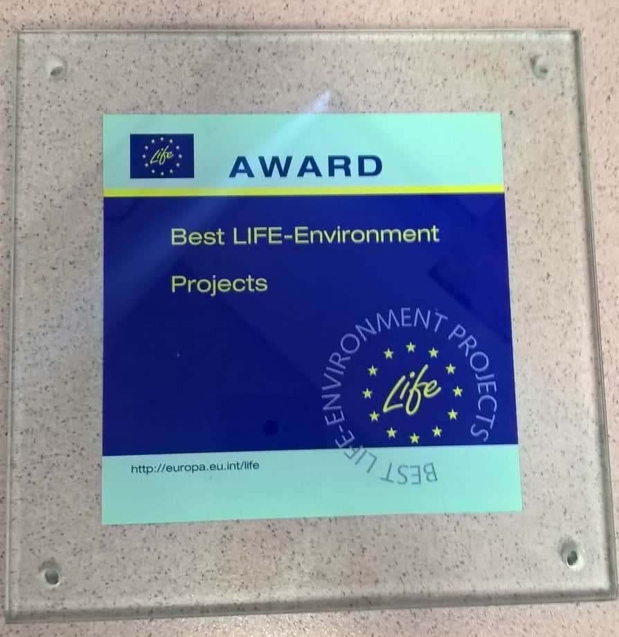 奖牌--欧洲联合one--one LIFE(环境)部门授予我们的 "绿色水槽 "项目的奖项,这是欧洲最好的项目之一。